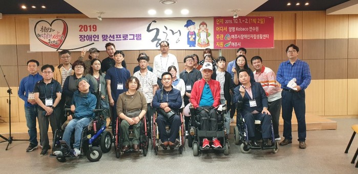 경기 여주시장애인자립생활센터가 최근 1박2일간 장애인에게 평생 의지하고 살아갈 동반자 또는 연인을 찾을 수 있도록 장애인 맞선 프로그램인 '동행'을 개최했다. 사진은 프로그램 참여자들이 기념촬영을 하는 모습.(사진제공=여주시청)