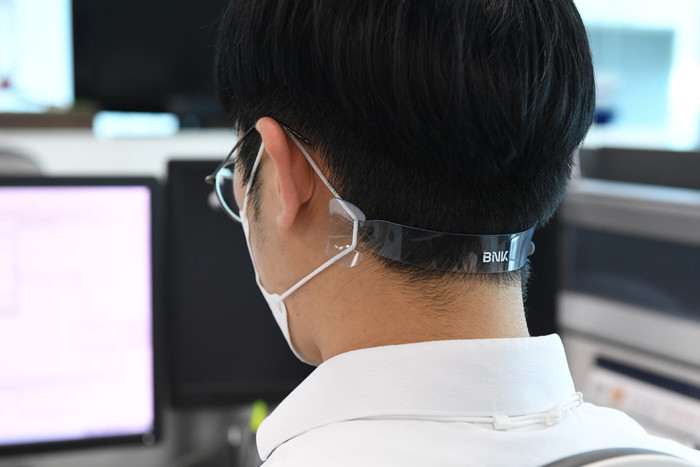 | ▲ 마스크용 고정띠 착용 사진.(사진제공=BNK부산은행) |