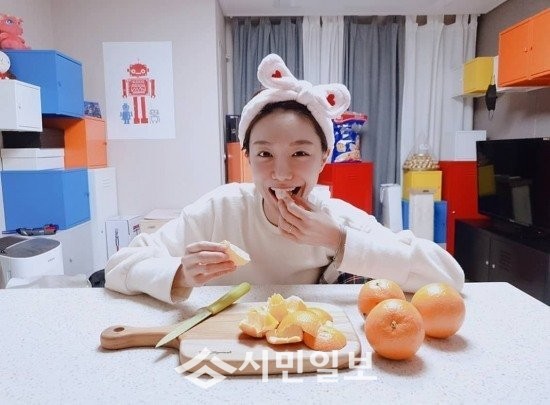 배우 신소율은 자신의 인스타그램에 "선물받은 도마로 가장 먼저 한 일:) 오렌지 잘라 먹기"라는 글과 함께 근황을 담은 인증 사진을 게재했다.