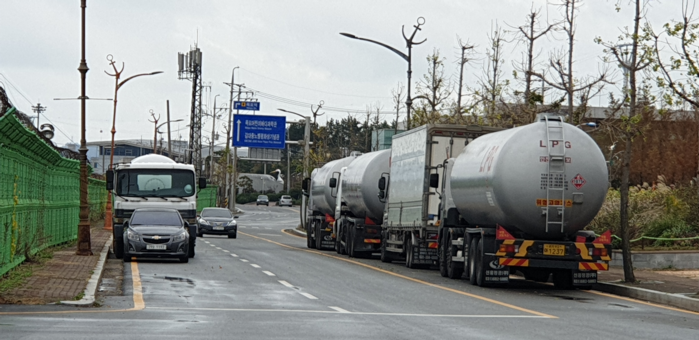 | ▲ 이래도 되나요?...목포삼학도 공원입구에 LPG를 수송하는 차량이 위험천만하게 주차(11월22일 낮 촬영) |