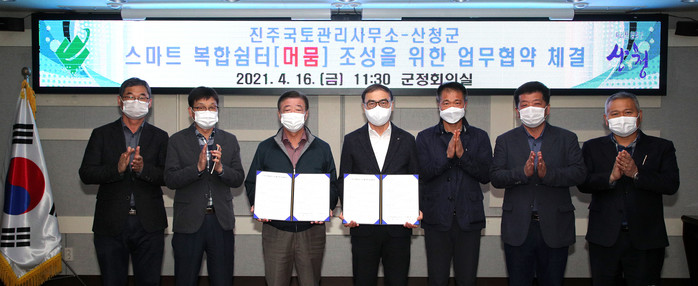 이번 협약은 산청군이 지난 3월 국토교통부에서 추진한 스마트 복합쉼터 조성 공모사업 대상지역에 선정된데 따른 것이다.