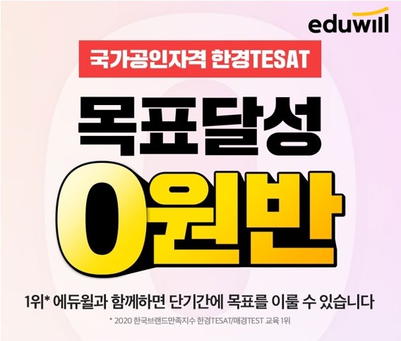 [시민일보 = 여영준 기자] 종합교육기업 에듀윌(대표 박명규)은 한경TESAT(테셋) ‘목표달성 0원반’에 1개월 무료 수강 연장이라는 추가 혜택을 덧붙였다고 밝혔다.