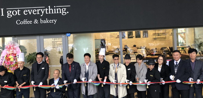 경기 이천시는 최근 이천 롯데프리미엄 아울렛에서 중증장애인 채용 카페 ‘I got everything’ 이천 2호점 개점식을 개최했다. 사진은 개점식에 참석한 엄태준 시장과 한국장애인개발원 사업본부장 등 관계자들이 테이프 커팅을 하는 모습.(사진제공=이천시청)
