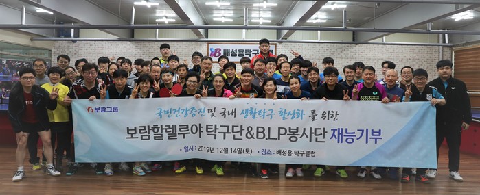 B.L.P 봉사단은 사내 사회봉사단과 보람상조 실업탁구단 보람할렐루야가 연계해 기업의 사회적 책임을 넘어 국민 건강증진과 생활스포츠 저변 확대를 위해 지난해 처음 발족됐다.