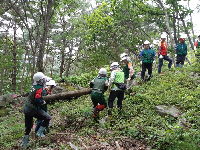 산림바이오매스 수집단은 산림경관 관리를 위해 생활권 주변 산림, 등산로, 도로변, 하천 등의 덩굴을 제거하여 산림재해를 예방하고, 숲가꾸기 산물을 수집하여 부산물들을 톱밥으로 가공해 퇴비화 하는 작업을 통하여 산물 활용을 촉진하는 사업이다.