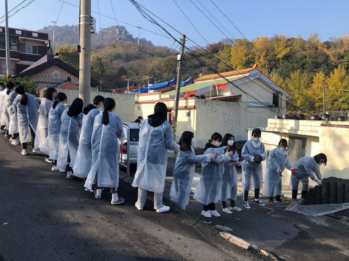 「사랑의 연탄 나눔 봉사활동」은 해마다 추진되는 행사로 학생들은 추운 날씨에도 불구하고 비좁은 골목길에서 연탄을 조심스럽게 운반하고 연신 밝은 표정으로 봉사활동을 하며 구슬땀을 흘렸다.