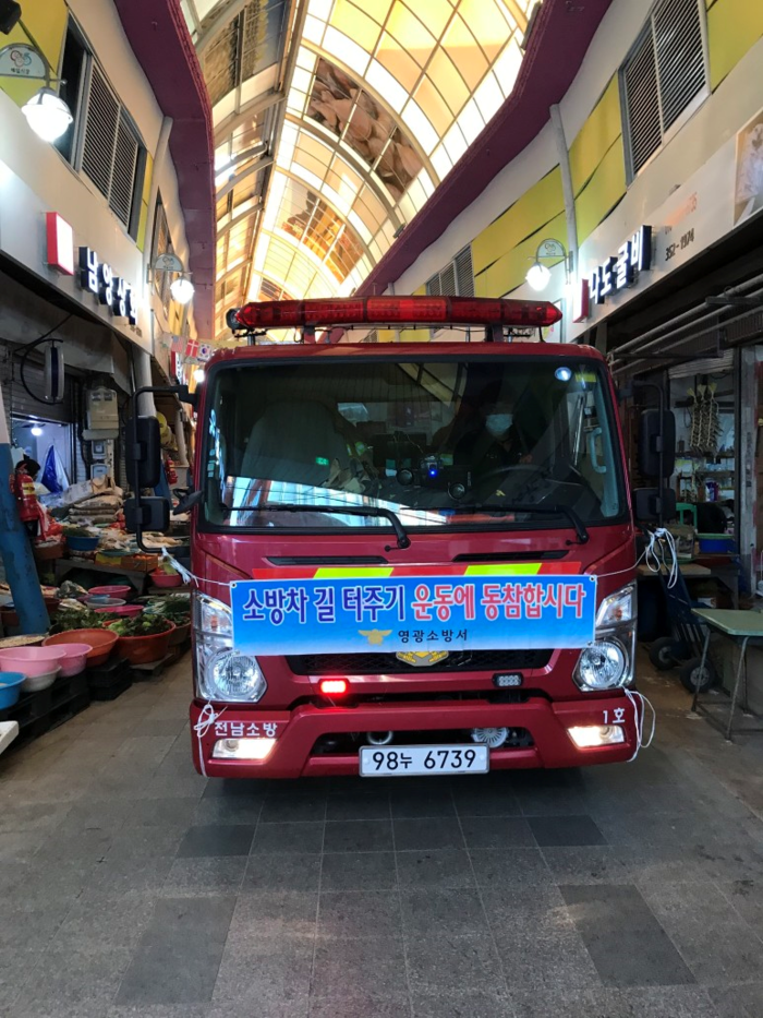 이날 캠페인은 영광터미널시장 등 관내 전통시장 3곳 주 출입로와 주변지역 소방차량 진입로를 점검하고 화재 발생 시 골든타임을 지키기 위해 신속한 소방출동의 중요성을 홍보하고자 마련됐다.