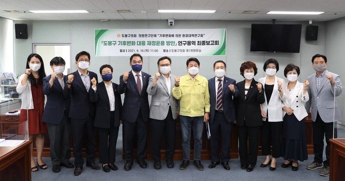 [시민일보 = 여영준 기자] 도봉구의회(의장 박진식) 의원 연구단체인 ‘기후변화에 의한 환경대책연구회’(대표의원 홍국표)가 지난 16일 오전 구의회 3층 제1위원회실에서 연구용역 최종보고회를 개최했다.