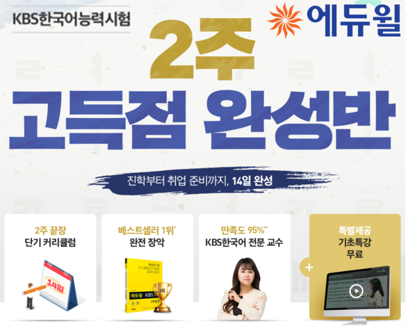 [시민일보 = 여영준 기자] 종합교육기업 에듀윌(대표 박명규)이 KBS한국어능력시험 대비 ‘2주 고득점 완성반’ 과정을 출시했다.