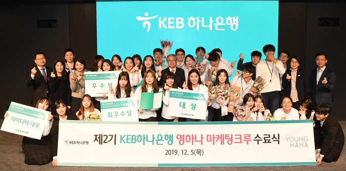 [시민일보 = 여영준 기자]KEB하나은행은 지난 5일 '청춘이 마케팅하다!'를 주제로 3개월간 진행해 온 대학생 참여형 마케팅 프로그램 '영하나 마케팅크루 2기'의 수료식을 개최했다고 밝혔다.