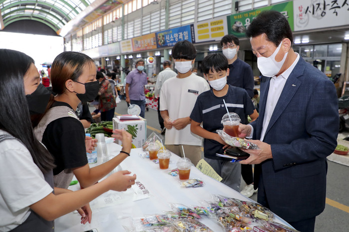합천군(군수 문준희)은 8월 13일 평생학습관에서 운영하는『하브루타 경제교육』의 마지막 수업으로 합천왕후시장번영회의 협조로 왕후시장 중심지에서 경제활동 체험교육을 실시했다. 행사에 참가한 14명의 학생들은 재료구입과 준비, 가격조사 및 책정, 상품 포장 등 철저한 사전준비를 통해 미숫가루, 아이스티 및 삶은 계란 등을 판매하여 시장을 찾은 방문객들에게 큰 호응을 얻었다.