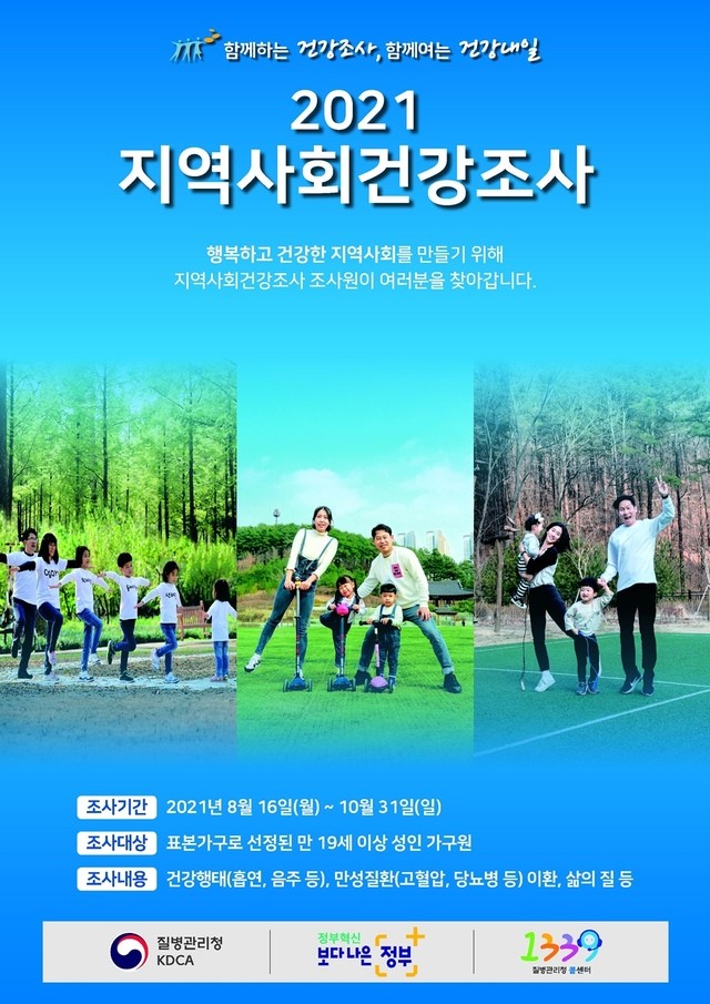 합천군(군수 문준희) 보건소는 합천군민의 건강수준 향상과 건강행태의 체계적인 관리를 위해 ‘2021년 지역사회건강조사’ 를 8월 16일부터 10월 31일까지 실시한다고 밝혔다.