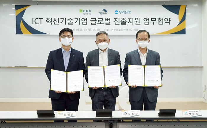 기술보증기금(이사장 정윤모, 이하 ‘기보’)은 과학기술정보통신부 산하 본투글로벌센터, 우리은행과 지난 13일(목) ICT 혁신기술기업 글로벌 진출 지원 업무협약을 체결했다고 밝혔다.