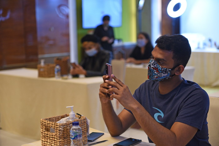 | ▲ 지난 18일 인도네시아 자카르타에서 열린 '갤럭시 노트20' 출시 행사에 참석한 현지 기자들이 제품을 체험하고 있는 모습.(사진제공=삼성전자) |