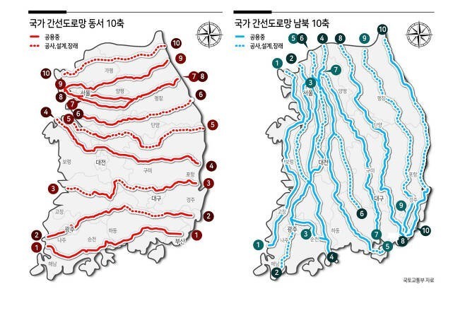 주요 내용으로는 도로 건설의 근간이 되는 국가 간선도로망은 92년 이래로 남북방향의 7개축과 동서방향의 9개축으로 구성된 격자망과 대도시 권역의 6개의 순환망으로 됐으나, 이번 계획을 통해 30여 년 만에 전체 국토에 대한 격자망의 경우, 국민들이 전국 어디에서나 간선 도로에 더욱 편리하게 접근할 수 있도록 남북방향의 10개축과 동서방향의 10개축으로 재편했다.