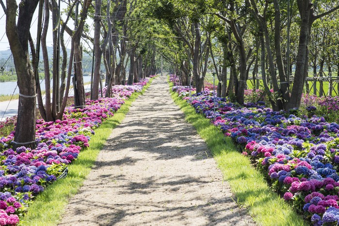 ‘신안 도초 환상의 정원’은 도초면 지남리 일원에 조성된 1.2km의 명품 팽나무 숲길로, 광활한 하늘을 향해 가지를 넓게 뻗은 70~100년생 이상의 팽나무 300여주가 환상적인 자태를 자랑하고 있다. 나무 아래에는 수국, 애기범부채 등 화목류가 어우러져 사계절 꽃피는 1004섬 신안군의 또하나의 명소로 자리잡았다.