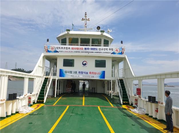 목포지방해양수산청(청장 김성수)은 신안군 재원도, 어의도를 운항하는 봉리-재원 항로에 차도선형 신조 여객선 섬사랑3호를 8월 30일 투입했다고 밝혔다.