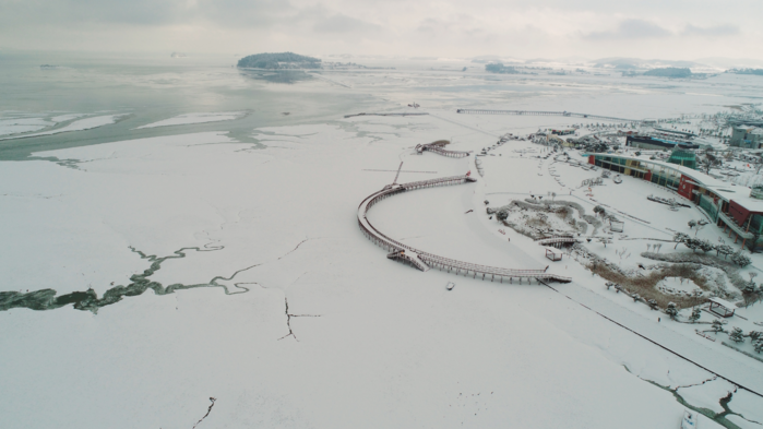 | ▲ 무안황토갯벌랜드 설경-하얀갯벌 |