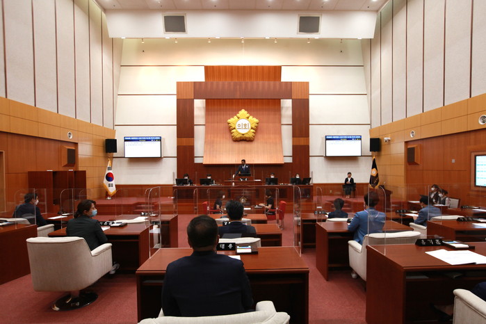구의회는 임시회 개회에 앞서 코로나19 확산을 예방하기 위해 본회의장과 상임위원회실에 비말 차단용 투명 가림막을 설치해 방역을 강화했다.
