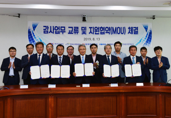 각 기관의 상임감사위원은 ▲ 감사인 전문성 향상을 위한 교육지원 ▲ 교차(합동)감사를 위한 전문분야 인력지원 ▲ 반부패 청렴문화 정착 등 상호협력을 위한 협약서에 서명했다.