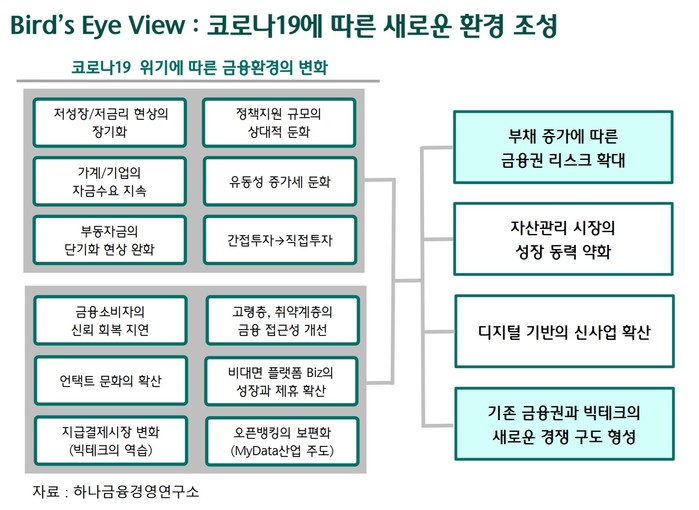 이와 함께 빅테크 등 비금융회사의 금융업 진출이 활발해질 것으로 보고, 과거 어느 때보다 치열한 새로운 경쟁관계가 펼쳐질 것으로 전망했다.