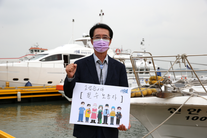박우량 신안군수는 지난 22일 코로나 19 상황에서도 대면 노동이 불가피한 필수노동자들을 응원하는 ‘고맙습니다 필수노동자’ 캠페인에 동참했다.