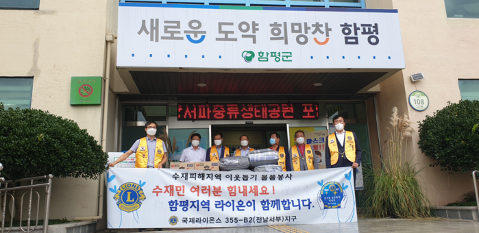 함평군 나산면은 11일 함평천지라이온스클럽(회장 김희석)에서 지난 집중호우로 큰 피해를 입은 지역 수재민들을 위해 써달라며 1백만 원 상당의 이불세트와 라면을 기탁했다고 밝혔다.