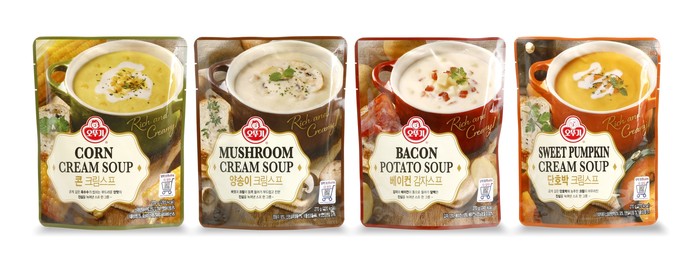 기존 스프 베스트셀러 메뉴인 ‘양송이 크림스프’와 ‘콘크림 스프’에 ‘베이컨 감자스프’와 ‘단호박 크림스프’를 더해 차별화된 오뚜기만의 진하고 부드러운 스프의 맛을 구현했다는 것이 회사측의 설명이다.