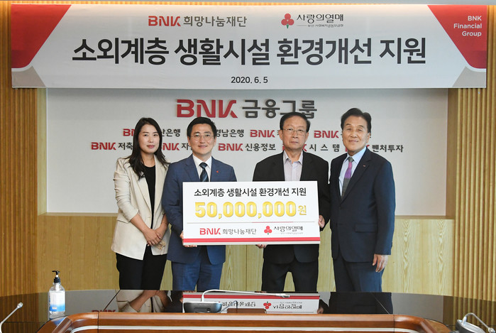 BNK는 5일 본점에서 ‘냉방기 세척 지원사업’을 위한 후원금 5000만원을 부산사회복지공동모금회에 전달했다.