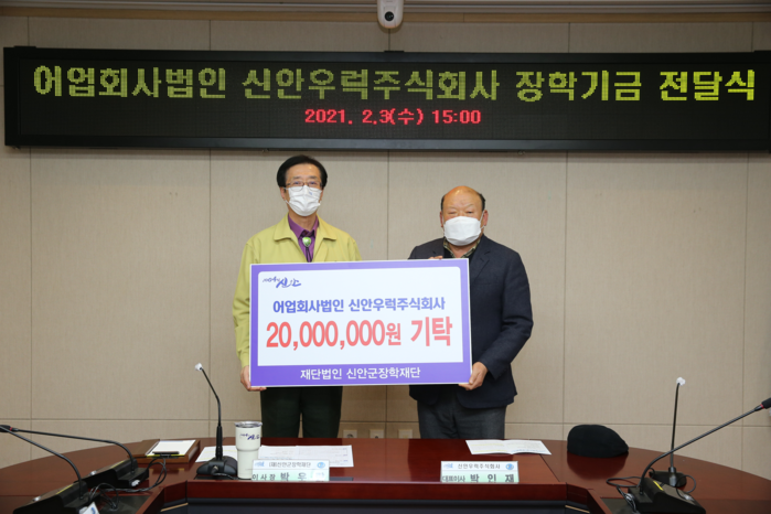 | ▲ 신안우럭(주), 신안군에 장학금을 기탁했다(출처=신안군) |