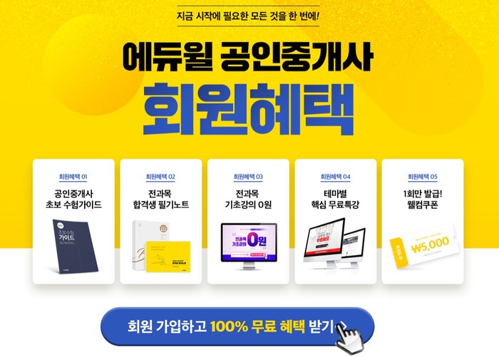[시민일보 = 여영준 기자]종합교육기업 에듀윌(대표 박명규)이 공인중개사 시험 준비를 시작하는 수험생들에게 다양한 회원 혜택을 무료로 제공한다.