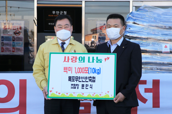 무안군(군수 김산)은 19일 목포무안신안축협(조합장 문만식)에서 관내 소외계층에 전달해 달라며 백미(10kg) 1,000포를 기탁했다고 밝혔다.