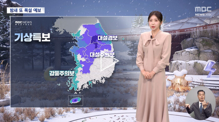 지난 27일 최아리 기상캐스터는 MBC 뉴스데스크 방송에서 지역별 폭설 예보를 차분히 전달해 주목받았다.