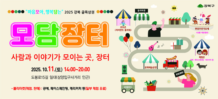 이순희 강북구청장은 “이번 ‘모담장터’가 상인들에게는 자생력을 다지는 기회가 되고, 주민들에게는 강북의 다양한 골목상권을 경험하는 뜻깊은 시간이 되기를 바란다”라며 “앞으로도 활기 넘치는 골목상권 조성을 위해 구 차원의 지원을 아끼지 않겠다”라고 말했다.