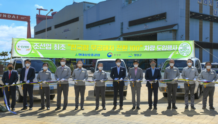 현대삼호중공업은 지난 3월 조선업계 최초로 2030년까지 사내 운용 차량 100%를 전기차로 전환해 나가겠다는 ‘한국형 무공해차 전환 100’ 사업에 참여를 선언한 바 있다.