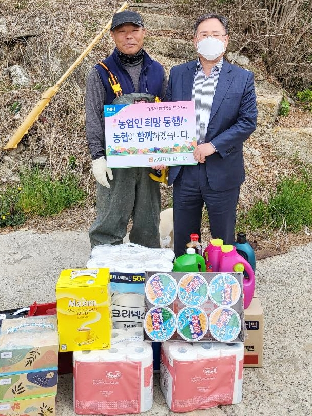 이날 행사는 농협자산관리회사(대표이사 송수일)의 농업인 신용회복 컨설팅(범 농협인의 모든 채무를 농업인 채무자의 변제여력에 맞는 채무조정으로 농업인이 안정적인 영농활동에만 전념할 수 있도록 지원)으로 이자 전액과 더불어 원금을 일부 감면받아 채무를 종결하여 신용을 회복한 어업인 이모씨댁을 방문해 생필품을 전달하는 방식으로, 농업인 희망동행 프로젝트의 일환으로 실시되었다.