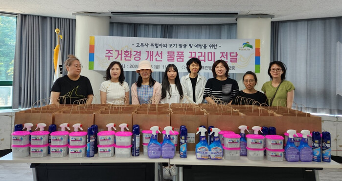 우리동네돌봄단과 함께 2인 1조로 대상자 가정에 직접 방문해 곰팡이제거제와 제습제, 살충제로 구성된 꾸러미를 전달하면서 가구의 생활환경을 직접 눈으로 보고 어려움을 나누는 시간을 가졌다.