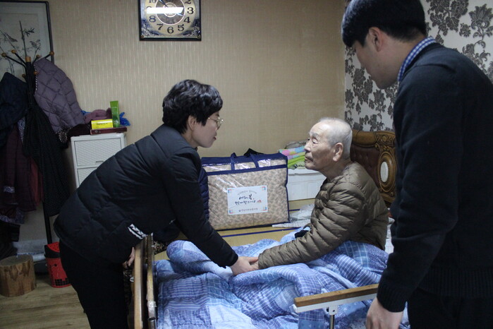 이번 위문은 6.25전쟁 당시 육군으로 참전한 유공자 이○희(진도거주, 96세), 월남전에 참전한 김○만(영암거주, 84세) 2가구를 방문하였으며, 참전유공자분들이 새해를 맞아 조금이라도 건강하기를 바라는 지청 직원들의 마음을 담아 준비한 겨울 이불 등 위문품을 전달하였다.