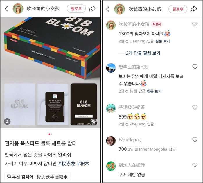 특히, 글로벌 사이트 운영 국가에 포함되지 못한 중국 팬들은 자국의 대표적인 온라인 플랫폼인 사오홍수(小红书)등을 통해 리셀 거래를 활발히 진행 중이다.
