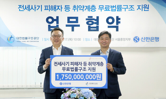 신한은행은 1997년부터 대한법률구조공단과 파트너십을 맺고 취약계층을 대상으로 다양한 법률지원 활동을 펼쳐왔다. 지금까지 총 493억원을 지원해 35만여명의 법률업무를 지원했으며, 기초생활수급자·결혼이민자 등 다양한 계층에 법률상담과 소송대리 서비스를 제공하고 있다.