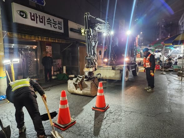 | ▲ 싱크홀 복구 현장.(사진= 김미경 구청장 페이스북) |