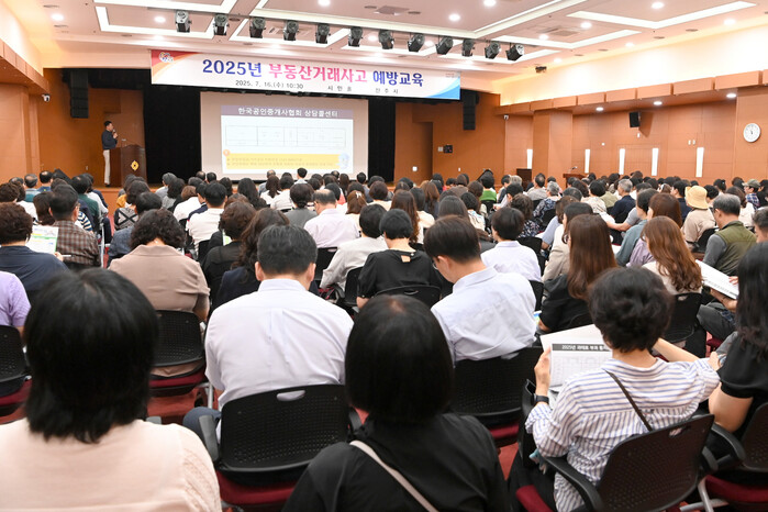 진주시는 16일 시청 시민홀에서 관내 공인중개사 300여 명을 대상으로 2025년 부동산거래사고 예방교육을 실시했다.