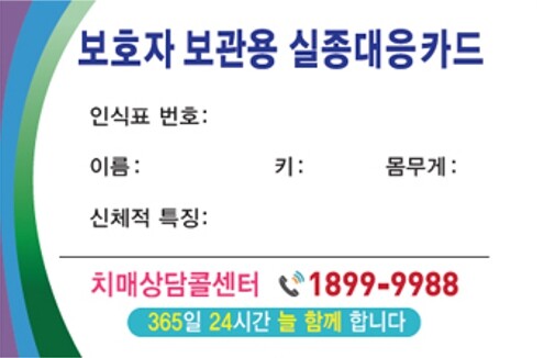 | ▲ , 배회 인식표 사진(실종대응카드) |