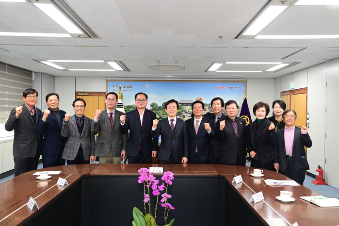 [진주=엄기동 기자] 조규일 진주시장은 지난 15일 시청 기업인의 방에서 진주시파크골프협회 신임 회장 및 임원, 진주시체육회장, 진주시파크골프협회 관리위원회 위원장과 간담회를 가졌다.