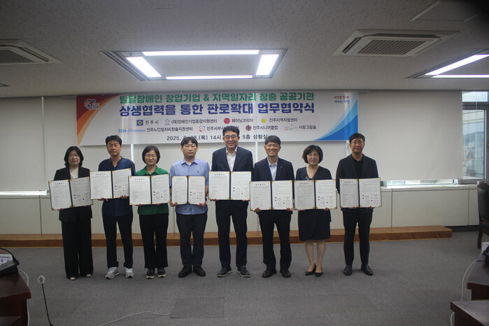 이번 업무협약은 ▲(재)장애인기업종합지원센터 ▲㈜웨이닝코리아 ▲진주지역자활센터 ▲진주노인일자리창출지원센터 ▲진주시니어클럽 ▲진주서부시니어클럽 ▲사랑그림숲 등 복지기관과 민간기업체 등 7개 기관이 참여했다.
