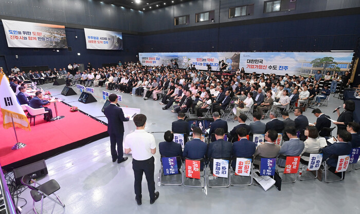 이날 행사에는 박완수 도지사, 조규일 진주시장을 비롯해 진주시민 300여 명이 참석해 생활 속 불편, 정책 아이디어 등을 자유롭게 제안하고, 도와 시의 답변을 직접 들었다.