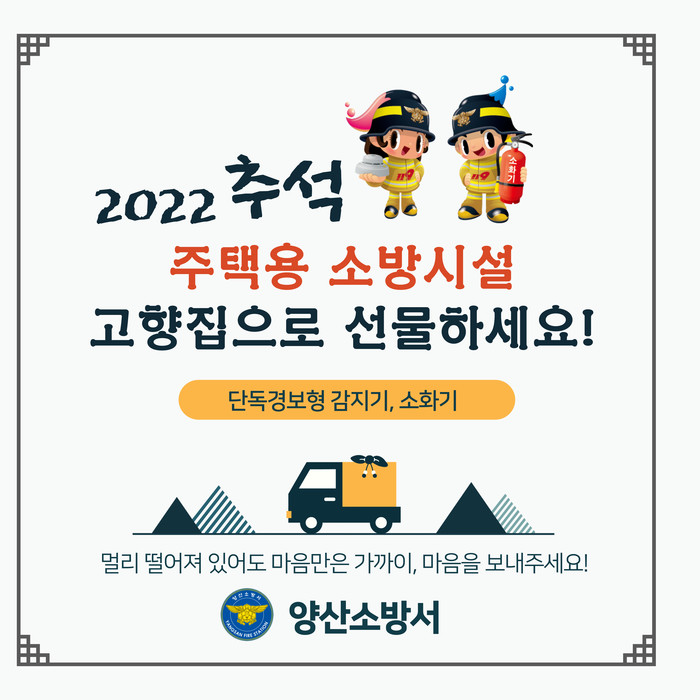 이번 홍보는 고향 집과 가족의 안전을 위해 주택용 소방 시설(소화기, 단독 경보형 감지기)을 선물하여 고향 집 안전을 지키자는 취지로 마련되었다.