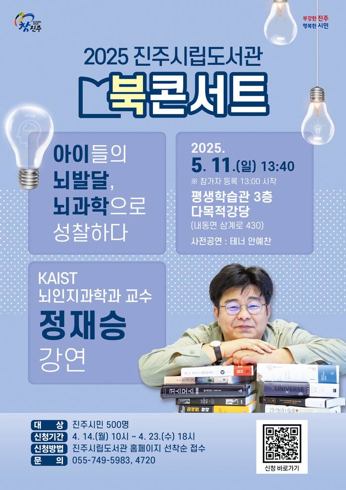 진주시립도서관은 오는 5월 11일 오후 1시 40분 평생학습관 다목적강당에서 KAIST 뇌인지과학과 정재승 교수를 초청하여 북콘서트를 개최한다.