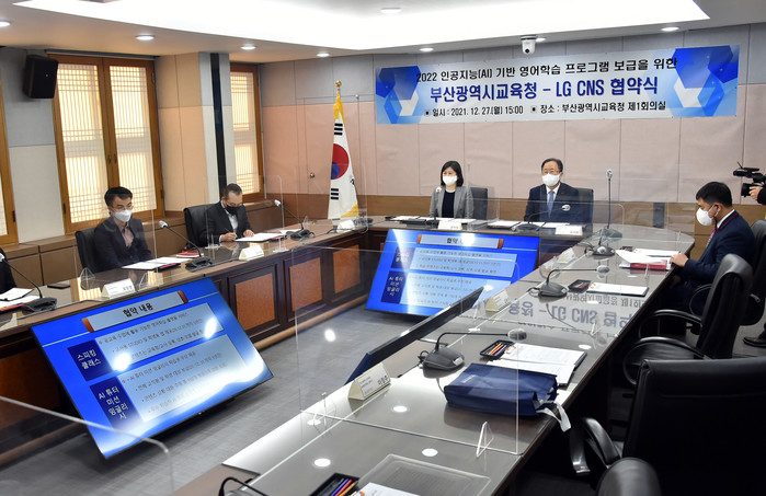 부산광역시교육청(교육감 김석준)과 LG CNS(대표이사 김영섭)는 12월 27일 오후 3시 시교육청 본관 제1회의실에서 ‘인공지능 기반 영어학습 프로그램 보급’을 위한 업무협약을 체결했다.