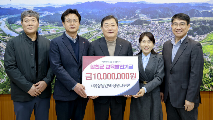 ㈜상원엔텍·㈜상원그린콘은 교육발전기금, 농축산물 가격안정기금, 이웃돕기 성금 기탁, 수해복구지원 등 합천군을 위해 많은 도움을 주고 있어 지역사회에 귀감이 되고 있다.